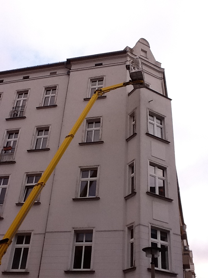 Berlin: Überprüfung und Instandsetzung von Traufgesimsen Altberliner Häuser. Die Traufgesimse stellen gemeinsam mit fehlerhaften Dachrinnen und Dachkonstruktionen oft einen Ausgangspunkt für Bauschäden dar. Wehret den Anfängen! Kostengünstig, durch den Einsatz von Hebebühnen, werden fehlerhafte Konstruktionen entfernt und fachmännisch neu aufgebaut. |